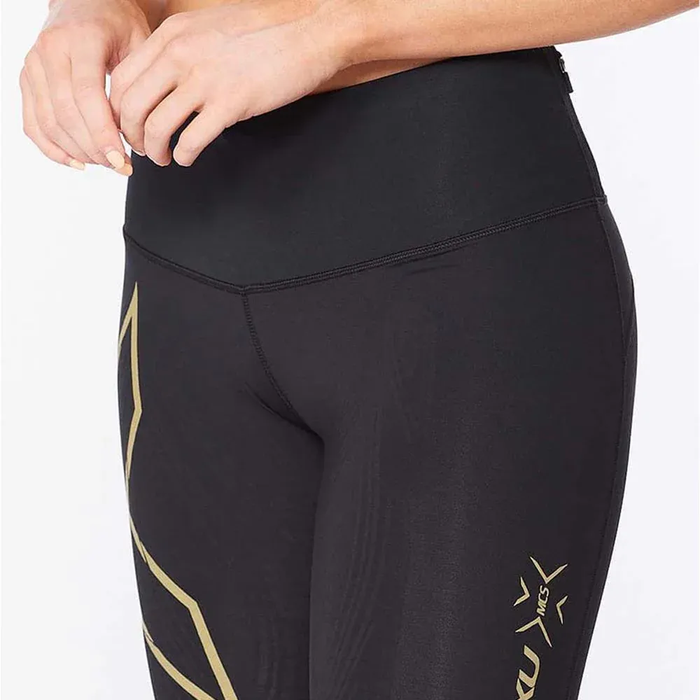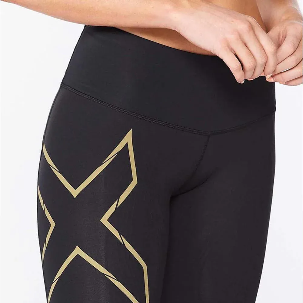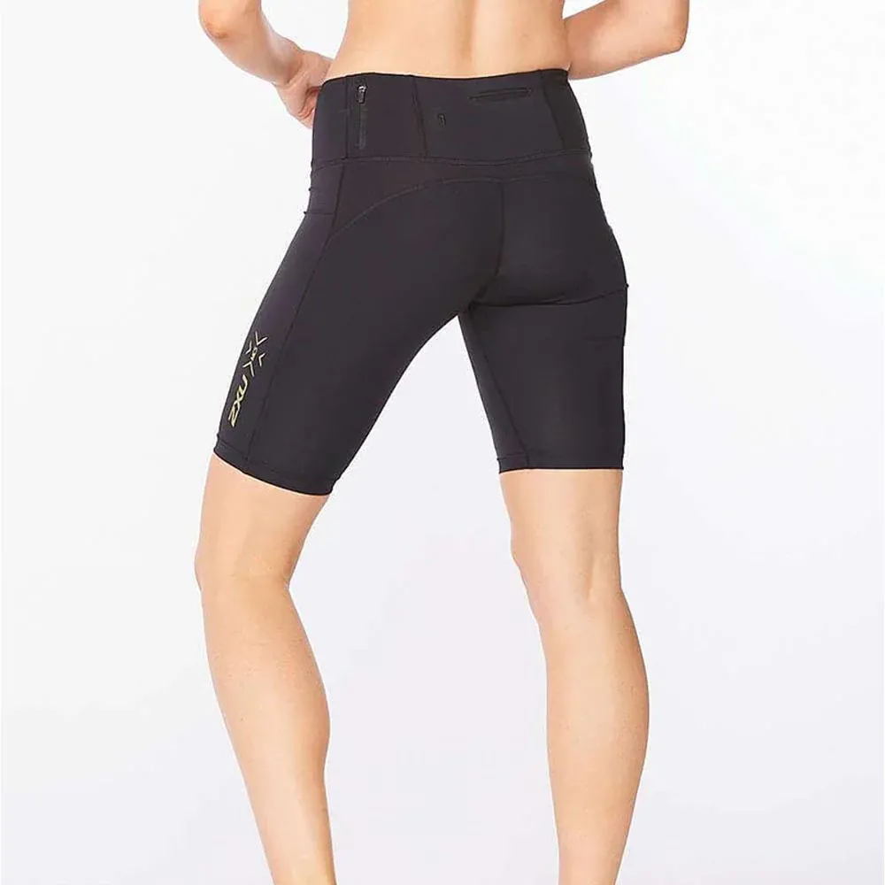 2XU Women Light Speed Mid-Rise Compression Short – Black / Gold Reflective