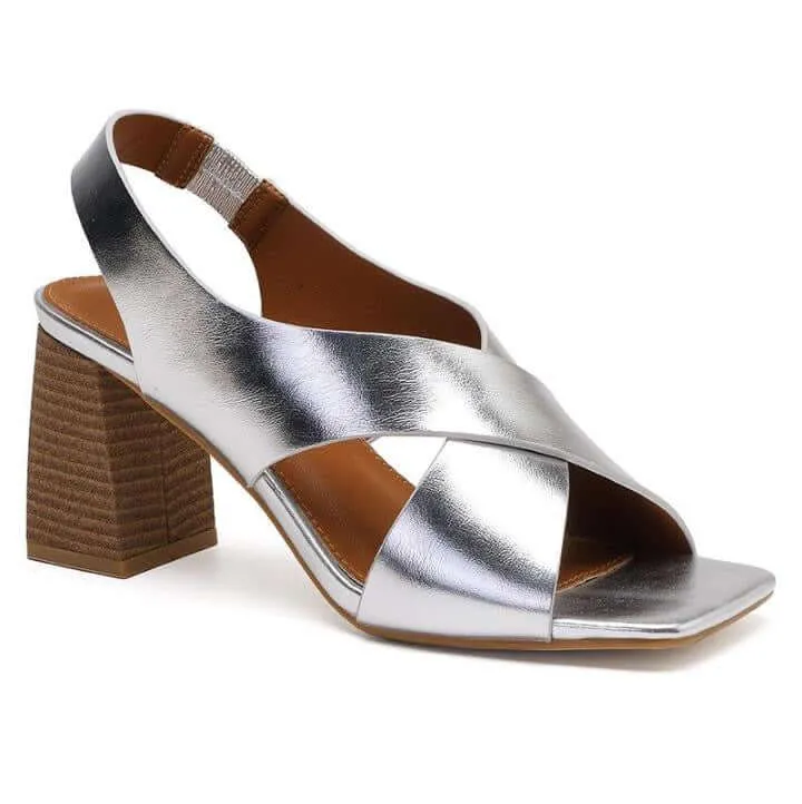 Elevate your style with the Helena Sandal. This versatile wedge sandal, available in silver or gold, adds a touch of glamour to any outfit. Its comfortable design and modern silhouette make it perfect for any occasion.