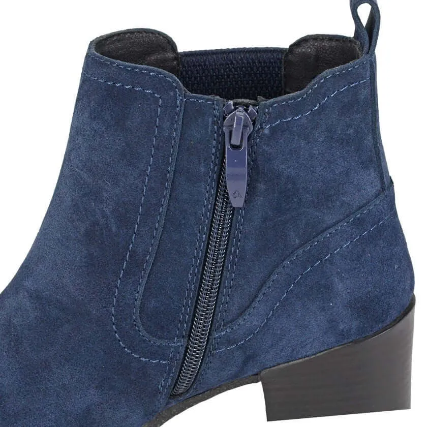 Navy Real Suede Zip Ankle Boot – Alessina