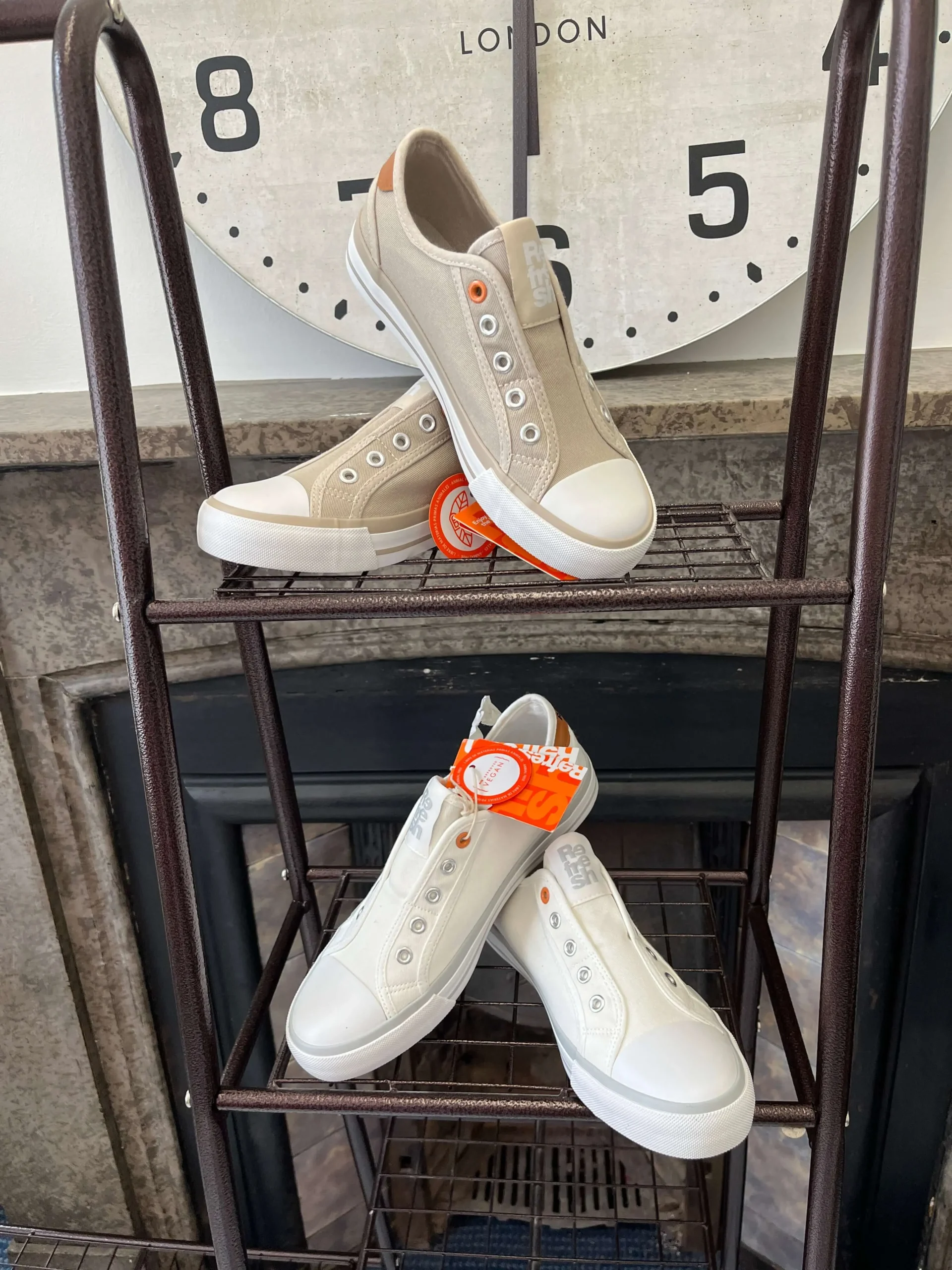 Be the envy of all your friends with Refresh’s Beige Canvas Slip On Trainers! Super easy to glide onto the foot and with a non-slip rubber sole, you can look and stay on-trend without sacrificing comfort. Plus, your animal-loving conscious stays clean, since it’s certified vegan by PETA! Time to show the world you can look good AND do good.