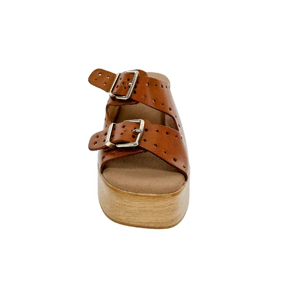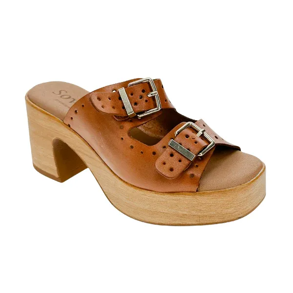 Introducing the all-new Sovella Paola! Crafted with a focus on support and comfort, these heels boast a padded footbed and a sturdy wooden wedge. Their lightweight design, coupled with dual adjustable front straps featuring metal pin buckles, offers a personalized fit and for all-day wearability.