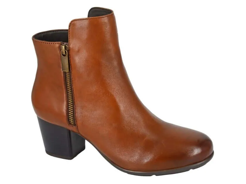 Expertly crafted with tan leather and a TPR sole, the Cleope Pull On Ankle Boot offers a comfortable and stylish solution for your everyday footwear needs. Its twin zip design and leather memory foam sock provide a perfect fit, while the block heel adds a touch of elegance.