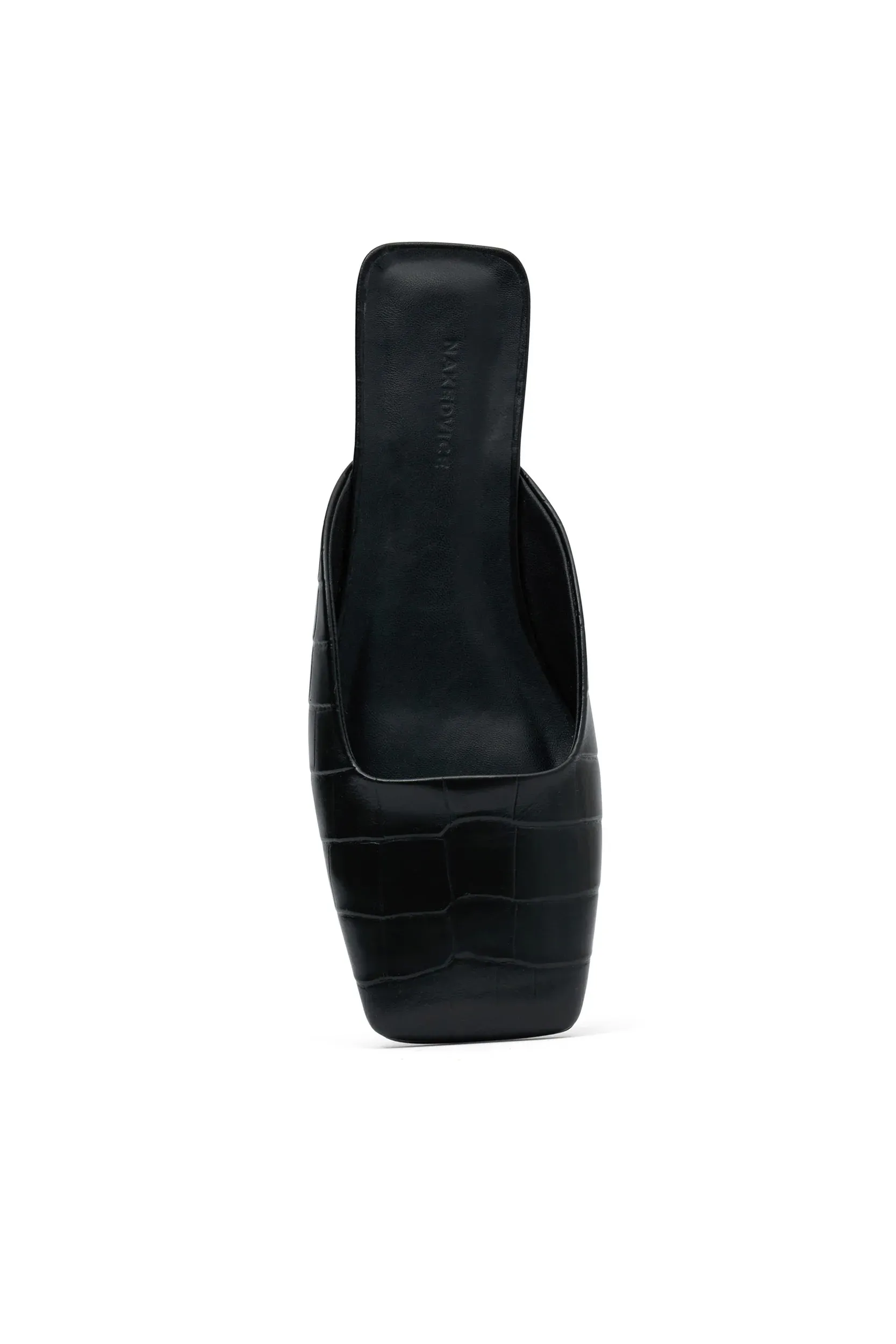 The Nolan Black Croc Embossed Mule by Nakedvice is a chic slide on leather mule. Featuring a square toe, croc embossed leather and with a comfortable 2.2cm heel height. To complete the look pair with the Beau Croc Embossed Tote.
