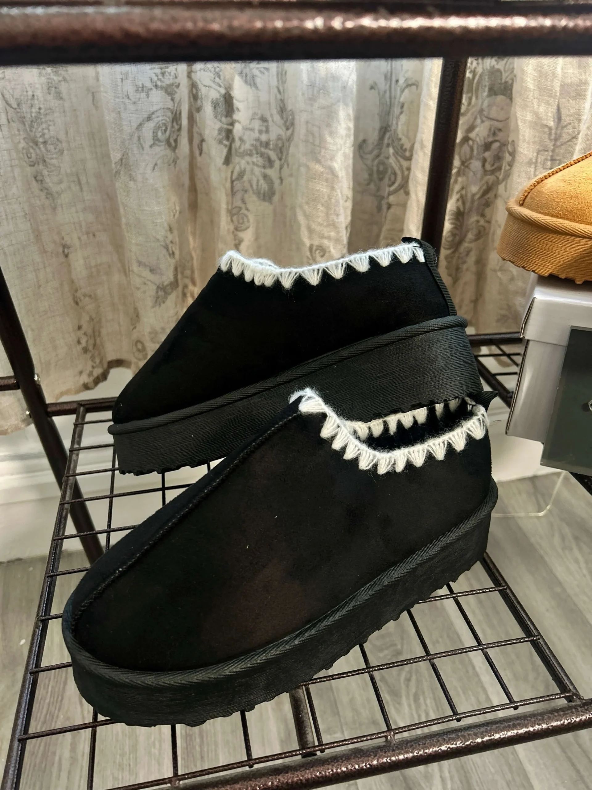 Introducing our platform faux suede slip on shoe, a versatile and comfortable slipper that’s perfect for any occasion. Slip into style with these classic faux suede shoes, designed for ease and comfort. Upgrade your footwear game with these must-have shoes!